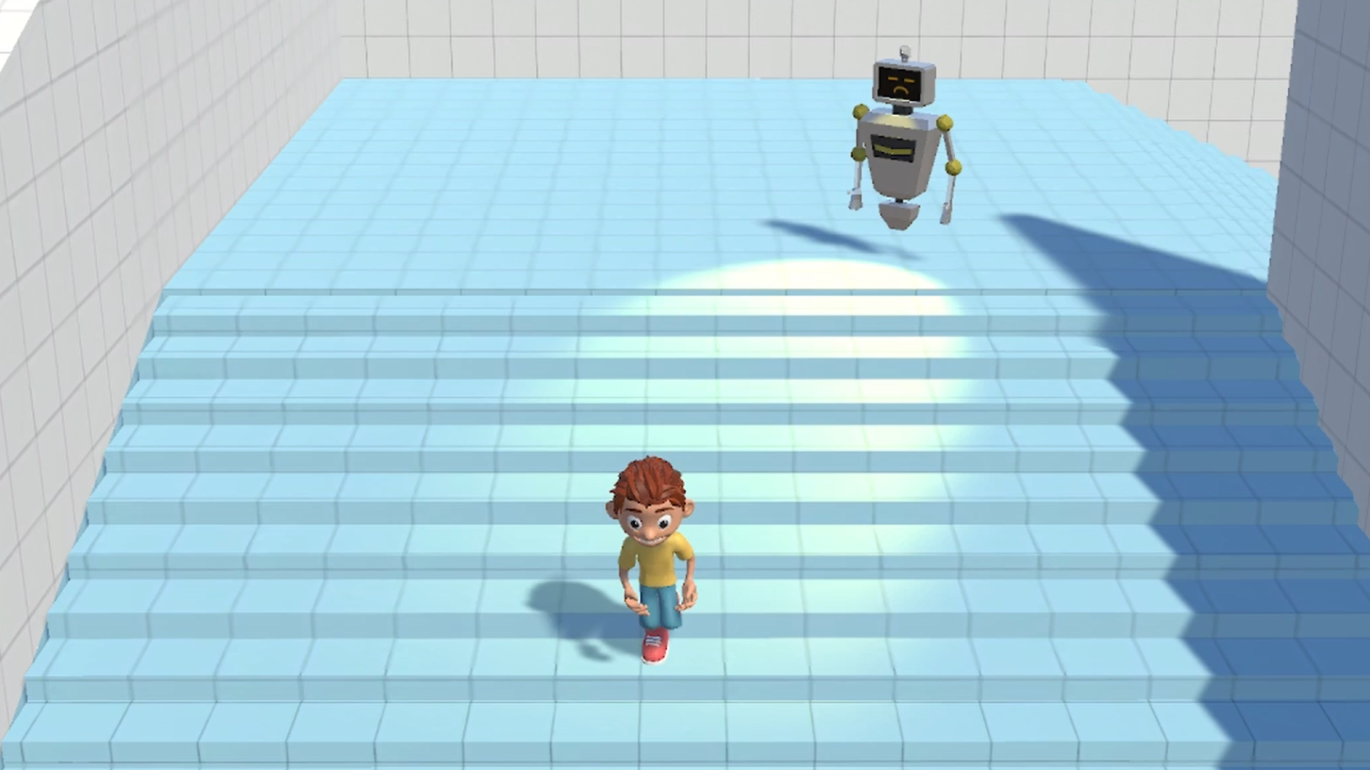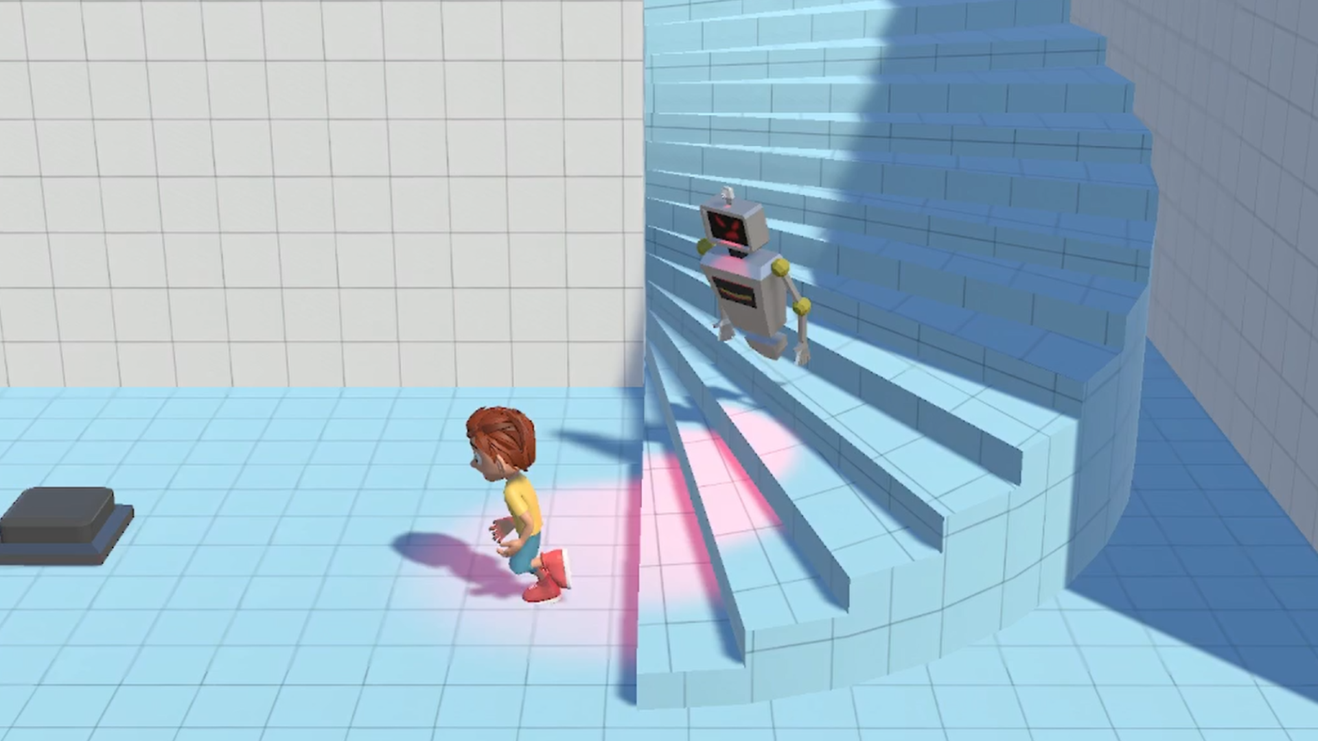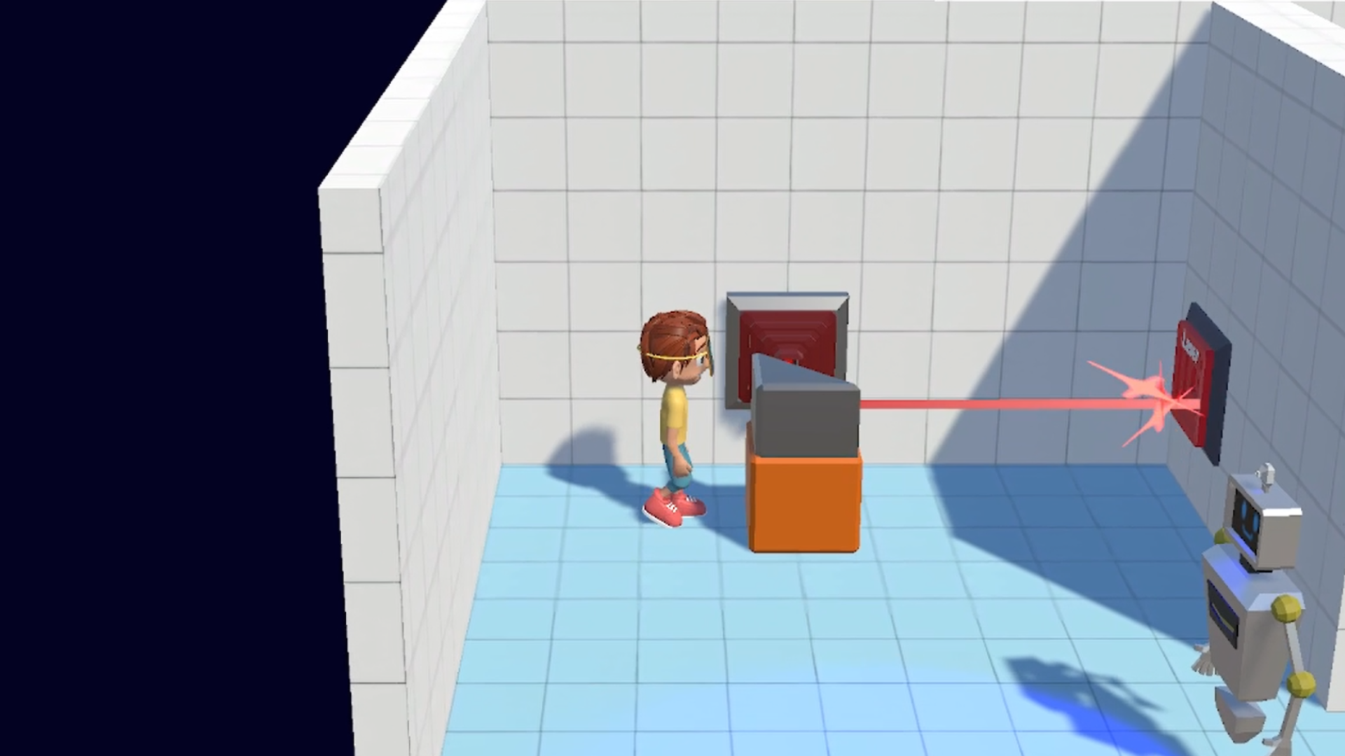 The game is a 3D puzzle platformer where you play as the son of a brilliant scientist that created a group of robots to defend his office against intruders, but one day the boy accidently added his image to the intruders database. Now you must wear a handmade mask to hide from the robots, then quickly pull it off to pass through facial recognition doors. Swap your mask at just the right time to dodge the bots and make it home safely!